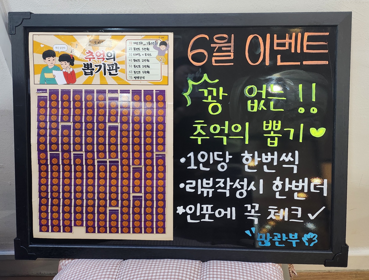 한 번의 기회가 아쉽다면 리뷰를 작성하여 기회를 한번 더 얻을 수 있다. 네이버 또는 당근 리뷰를 작성하는 회원들에게는 뽑기권 1회가 더 주어진다.